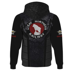 Railspirit Personalized Great Northern Railway Hoodie Cracked Metal Design GNR Train Zip Up Hoodie for Rail Enthusiasts