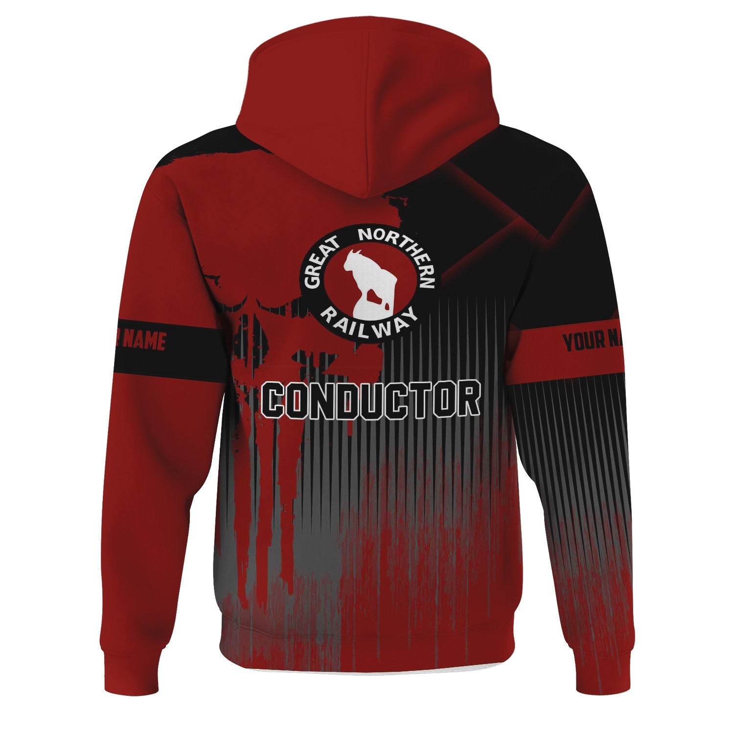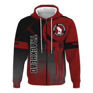 Railspirit Personalized Great Northern Railway Hoodie Skull Design with Custom Job GNR Train Zip Up Hoodie for Trackhead Crew