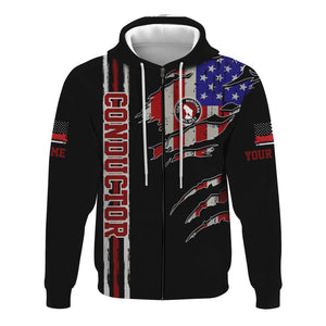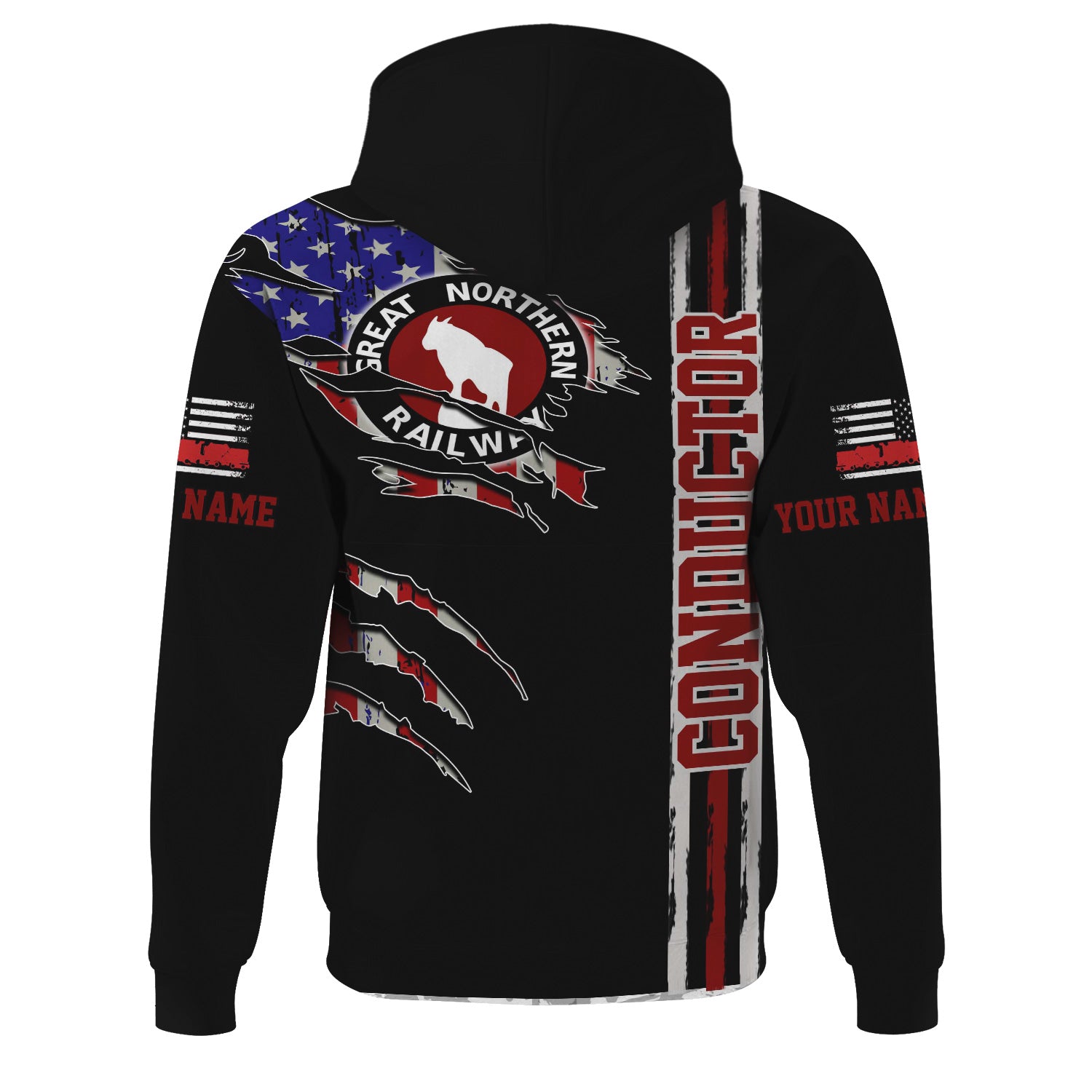 Railspirit Personalized Great Northern Railway Hoodie USA Flag Claw Art with Custom Job GNR Train Zip Up Hoodie
