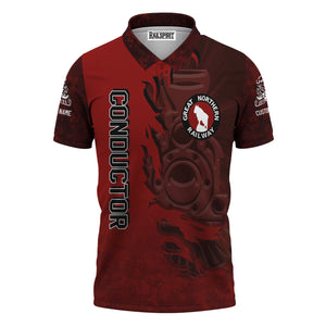 Railspirit Personalized Great Northern Railway Polo Shirt Blazing Style with Custom Position GNR Train Shirt