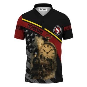 Railspirit Personalized Great Northern Railway Polo Shirt Classic Steam Engine With Retro Pocket Watch GNR Shirt All Over Print
