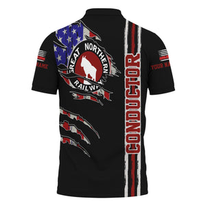 Railspirit Personalized Great Northern Railway Polo Shirt USA Flag Claw Art with Custom Job GNR Train Shirt