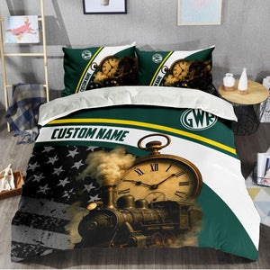 Railspirit Personalized Great Western Railway Bedding Set Classic Steam Engine With Retro Pocket Watch Bedding Set All Over Print