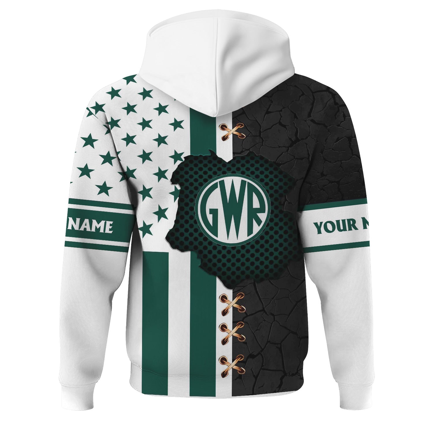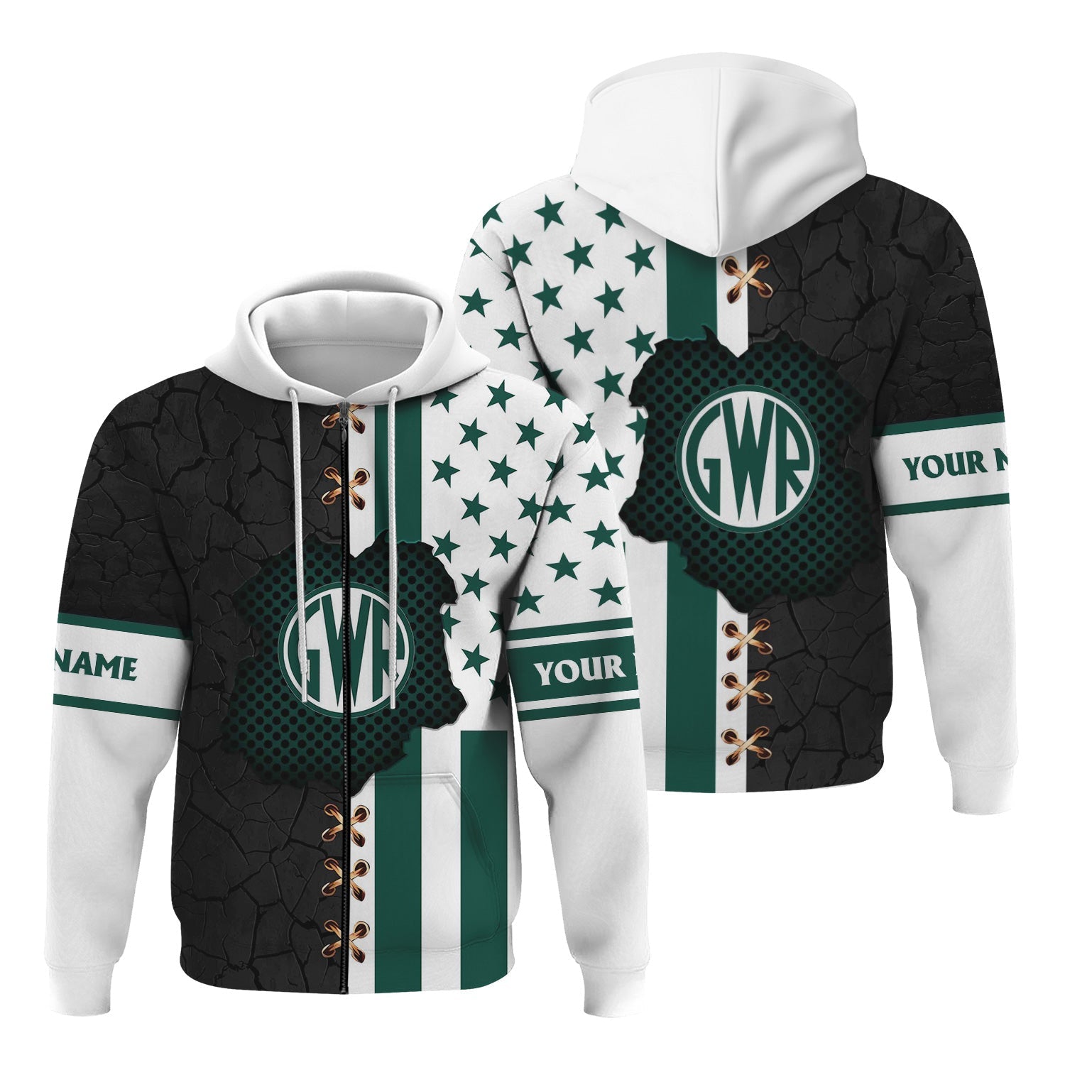 Railspirit Personalized Great Western Railway Hoodie American Flag with Crack Effect Train Zip Up Hoodie