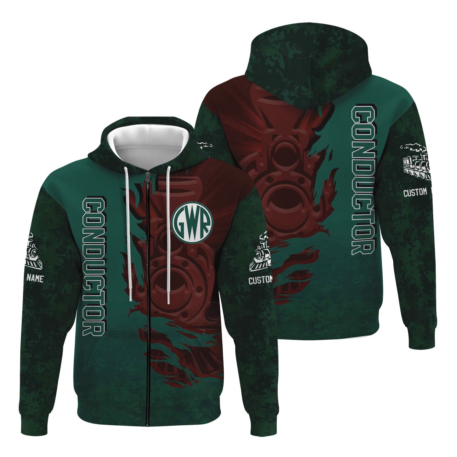 Railspirit Personalized Great Western Railway Hoodie Blazing Style with Custom Position Train Zip Up Hoodie