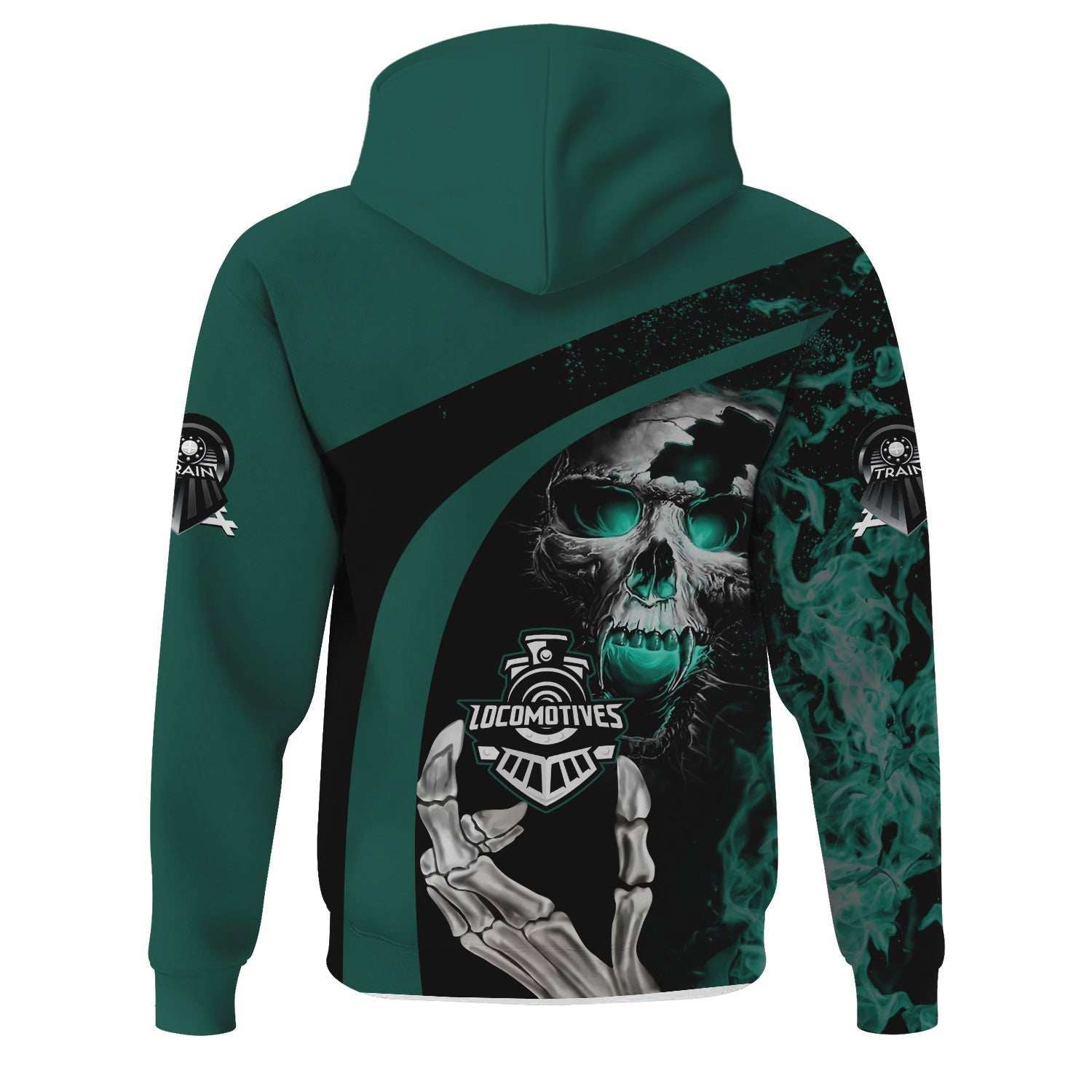Railspirit Personalized Great Western Railway Hoodie Flame Skull Design Train Zip Up Hoodie for Locomotive Fans