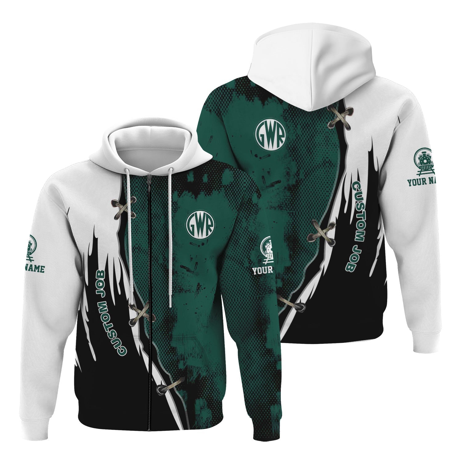 Railspirit Personalized Great Western Railway Hoodie Retro Stitches Design with Custom Position Train Zip Up Hoodie
