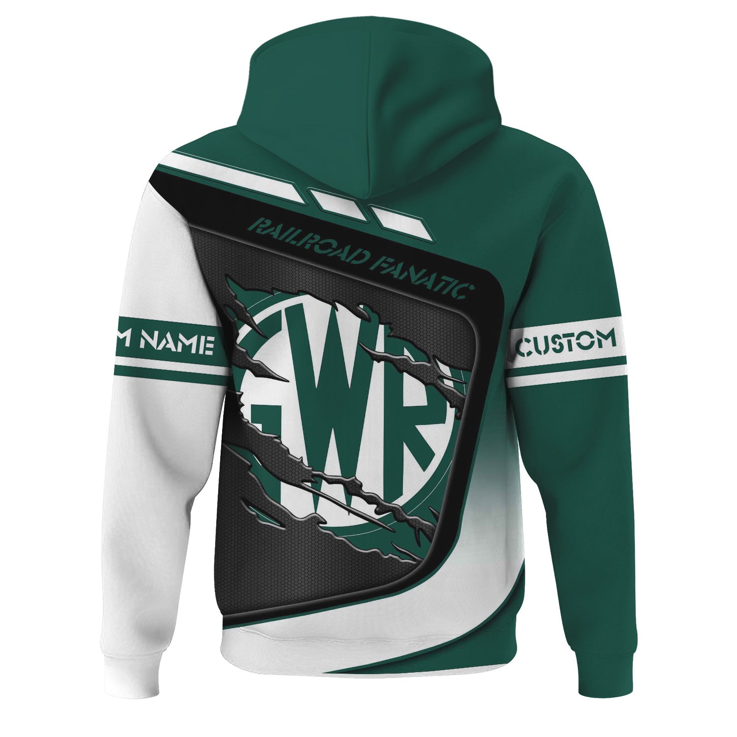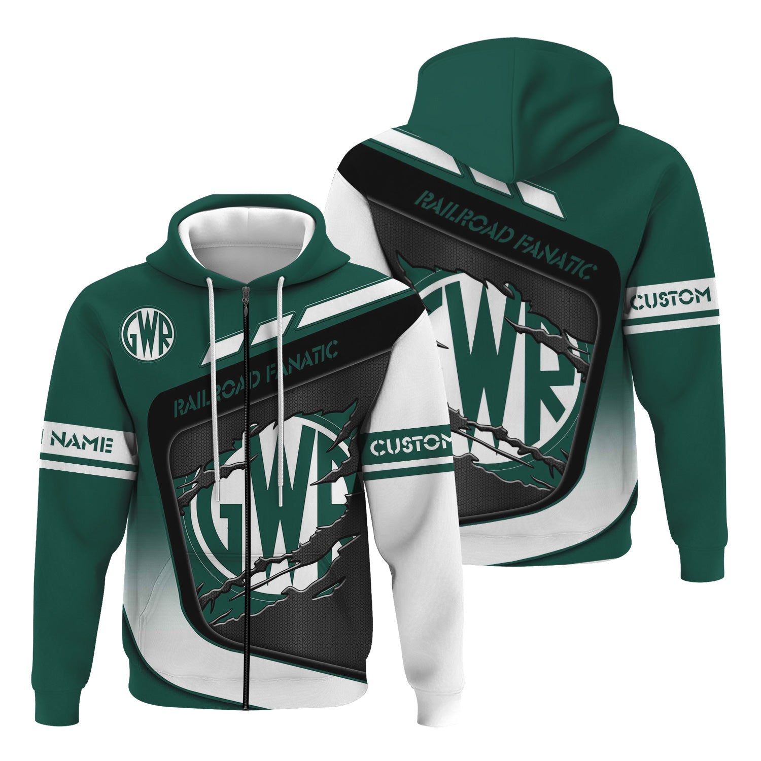 Railspirit Personalized Great Western Railway Hoodie Ripped Texture Style Train Zip Up Hoodie For Railroad Fanatic