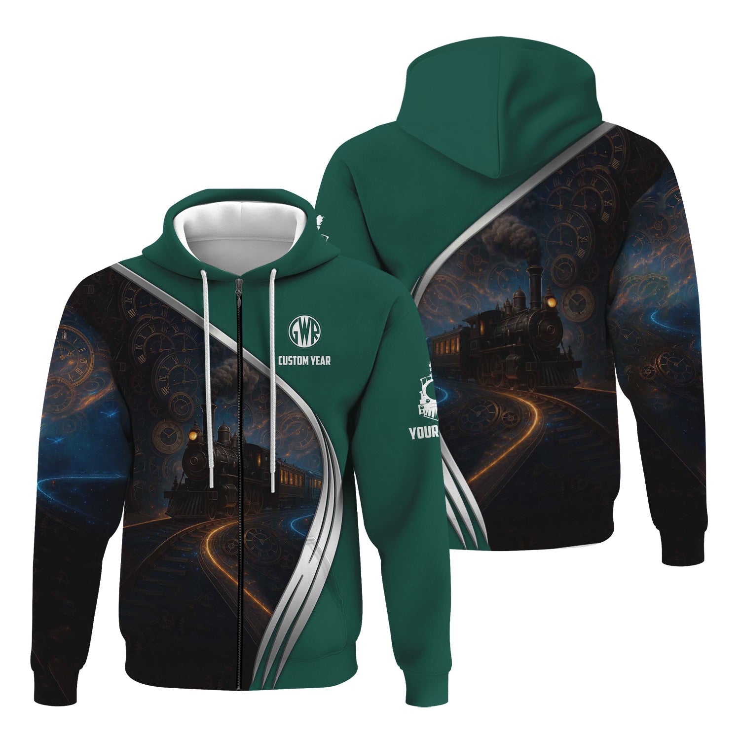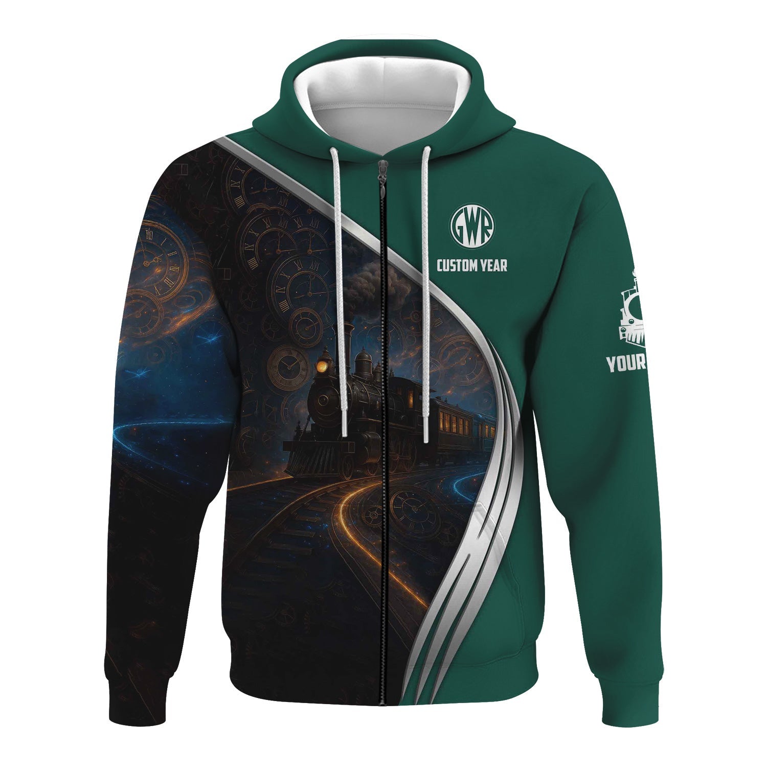 Railspirit Personalized Great Western Railway Hoodie Steampunk Locomotive with Custom Year Train Zip Up Hoodie