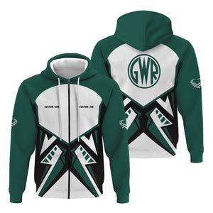 Railspirit Personalized Great Western Railway Hoodie Vibriant Style with Custom Position Train Zip Up Hoodie
