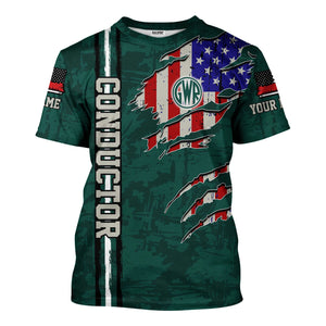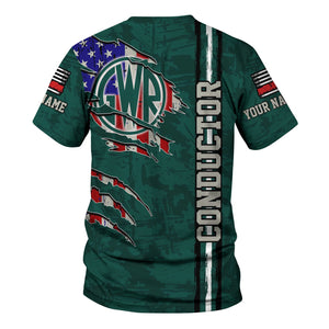 Railspirit Personalized Great Western Railway T-Shirt USA Flag Claw Art with Custom Job Train Shirt