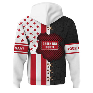 Railspirit Personalized Green Bay & Western Railroad Hoodie American Flag with Crack Effect Train Zip Up Hoodie
