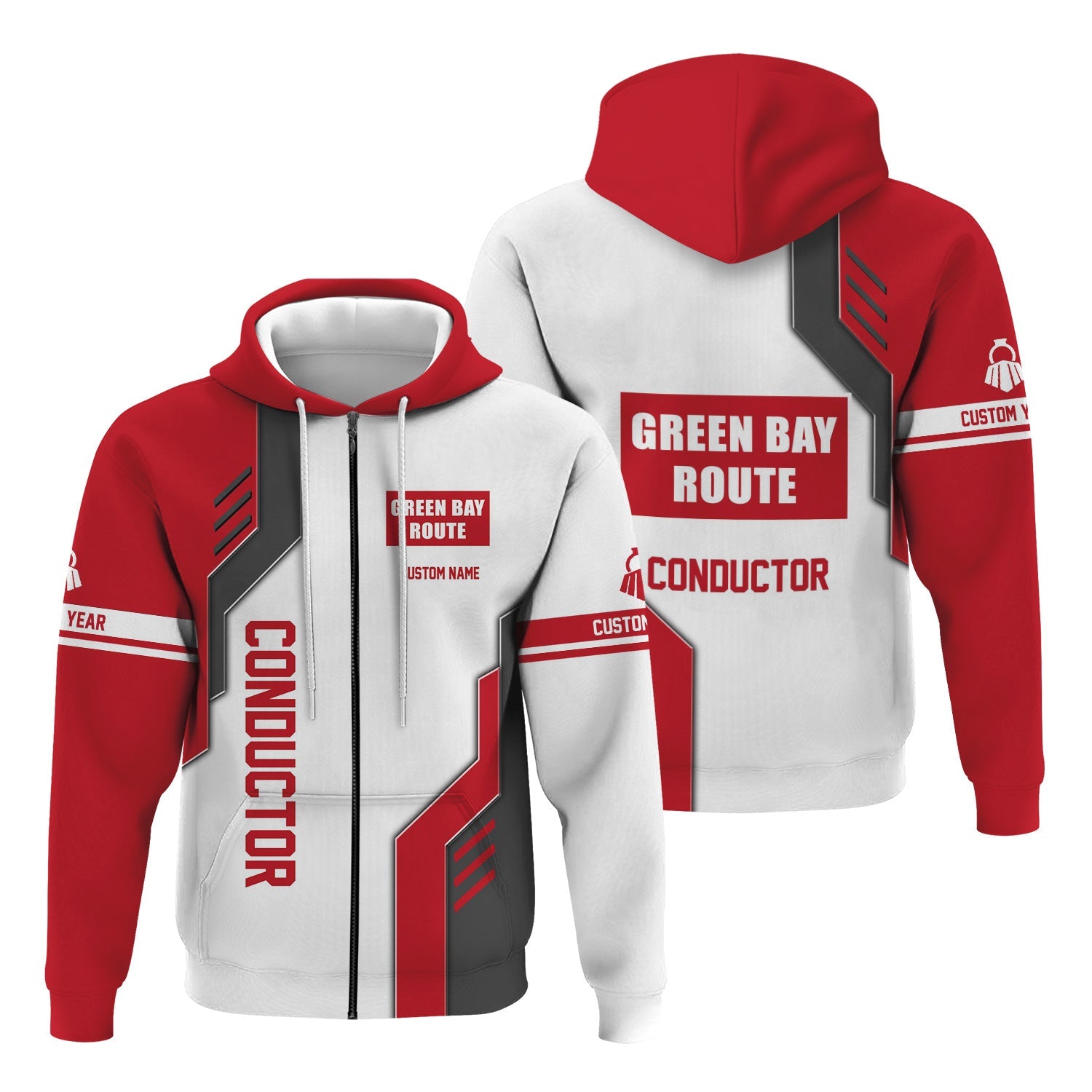 Railspirit Personalized Green Bay & Western Railroad Hoodie Unique Railway Style with Custom Job Train Zip Up Hoodie