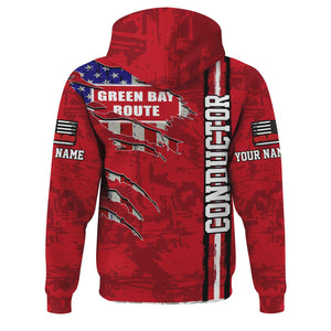 Railspirit Personalized Green Bay & Western Railroad Hoodie USA Flag Claw Art with Custom Job Train Zip Up Hoodie
