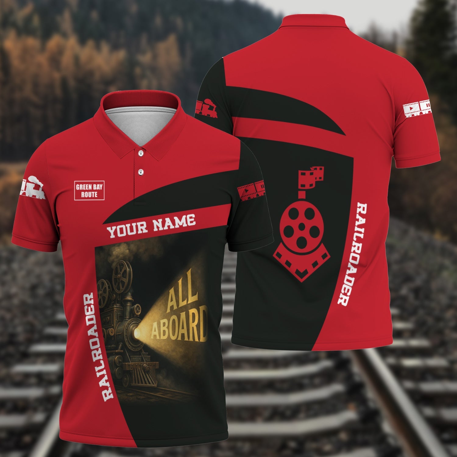 Railspirit Personalized Green Bay & Western Railroad Polo Shirt All Aboard Steam Train Movie Projector Style Shirt