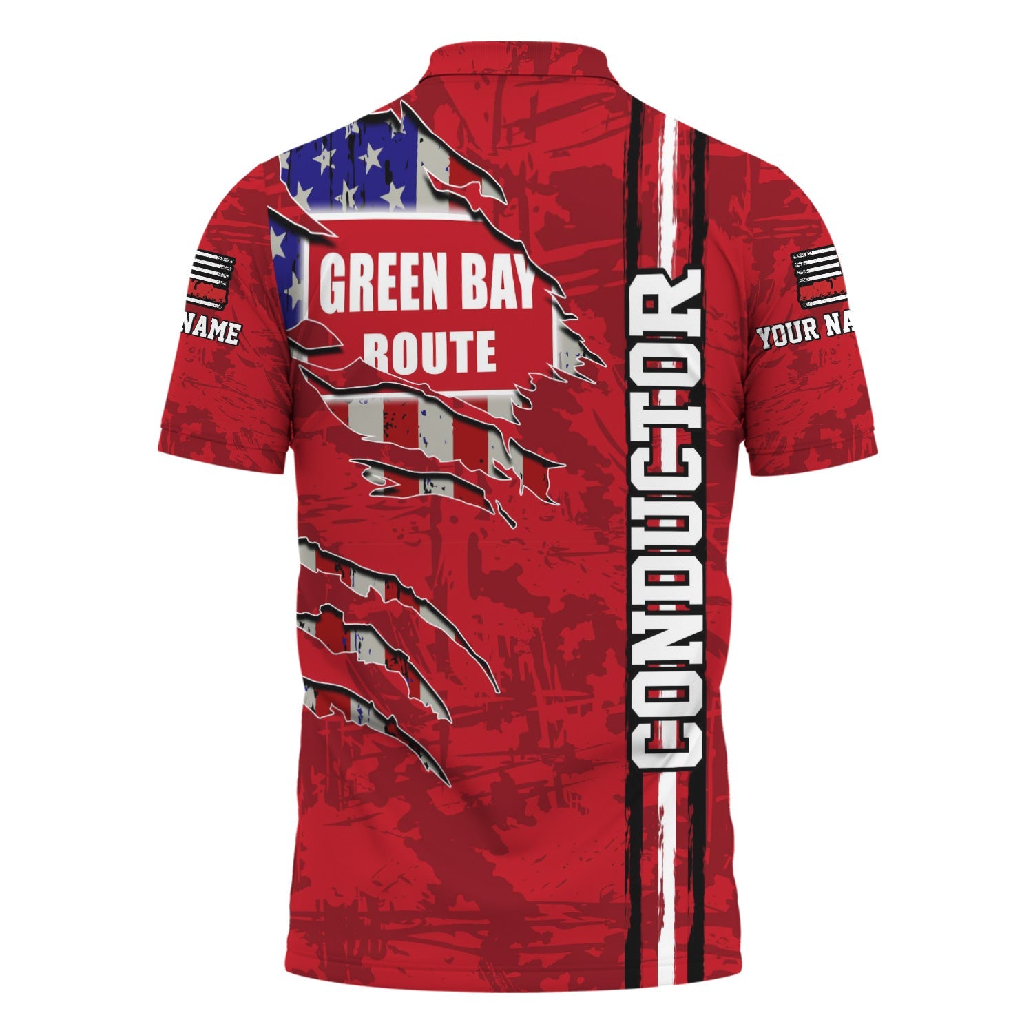 Railspirit Personalized Green Bay & Western Railroad Polo Shirt USA Flag Claw Art with Custom Job Train Shirt