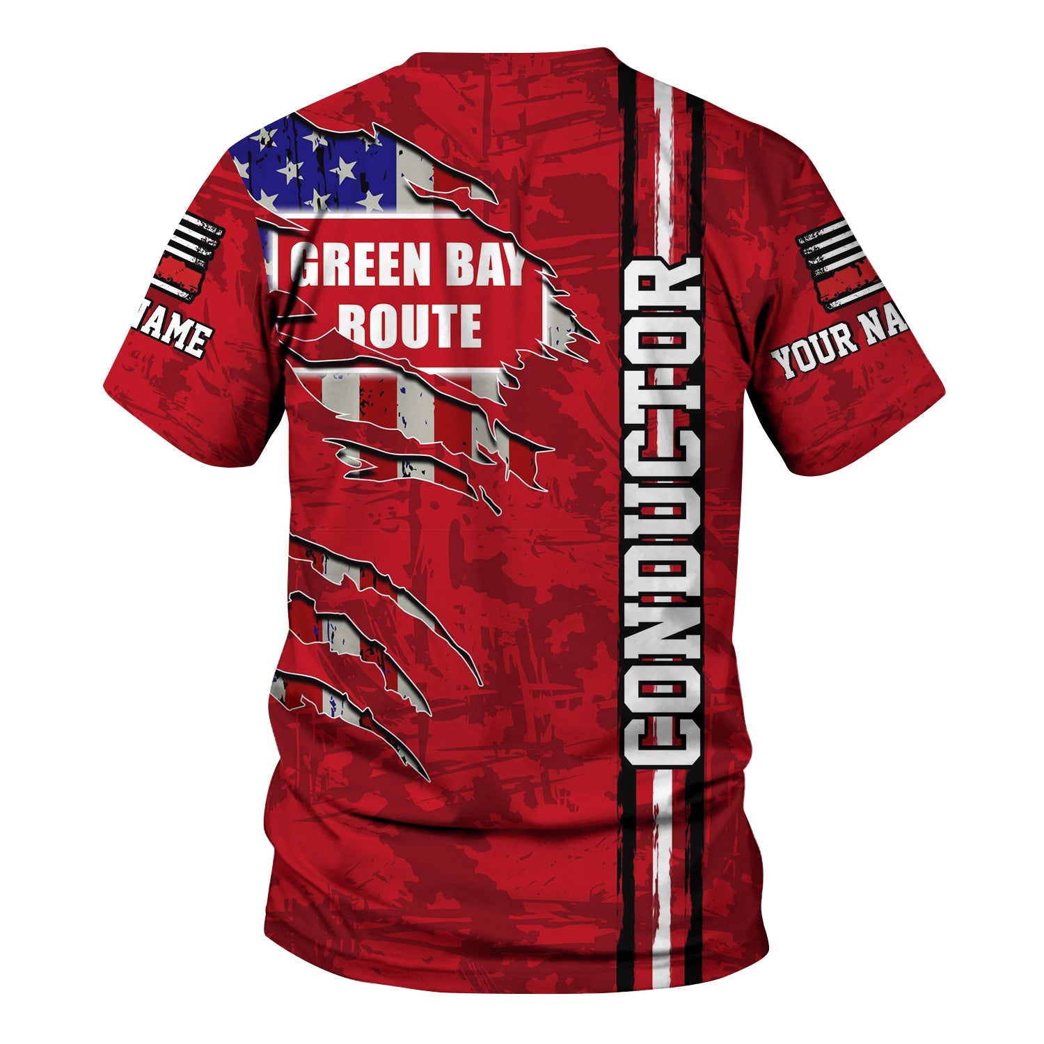 Railspirit Personalized Green Bay & Western Railroad T-Shirt USA Flag Claw Art with Custom Job Train Shirt