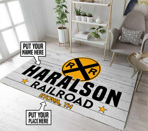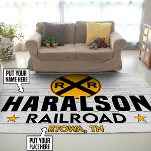 Railspirit Personalized Haralson Railroad Crossing Train Style Area Rug Gift Idea For Train Lovers