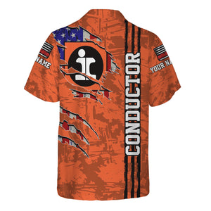 Railspirit Personalized Illinois Central Railroad Hawaiian Shirt USA Flag Claw Art with Custom Job Train Shirt