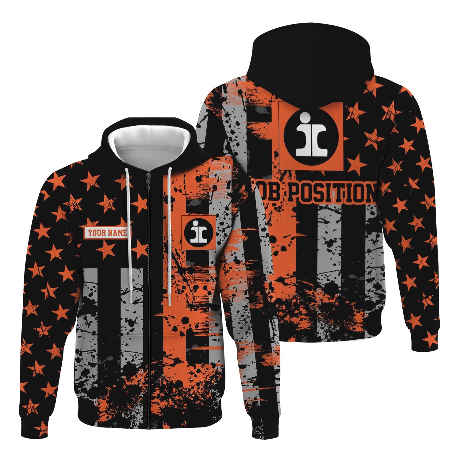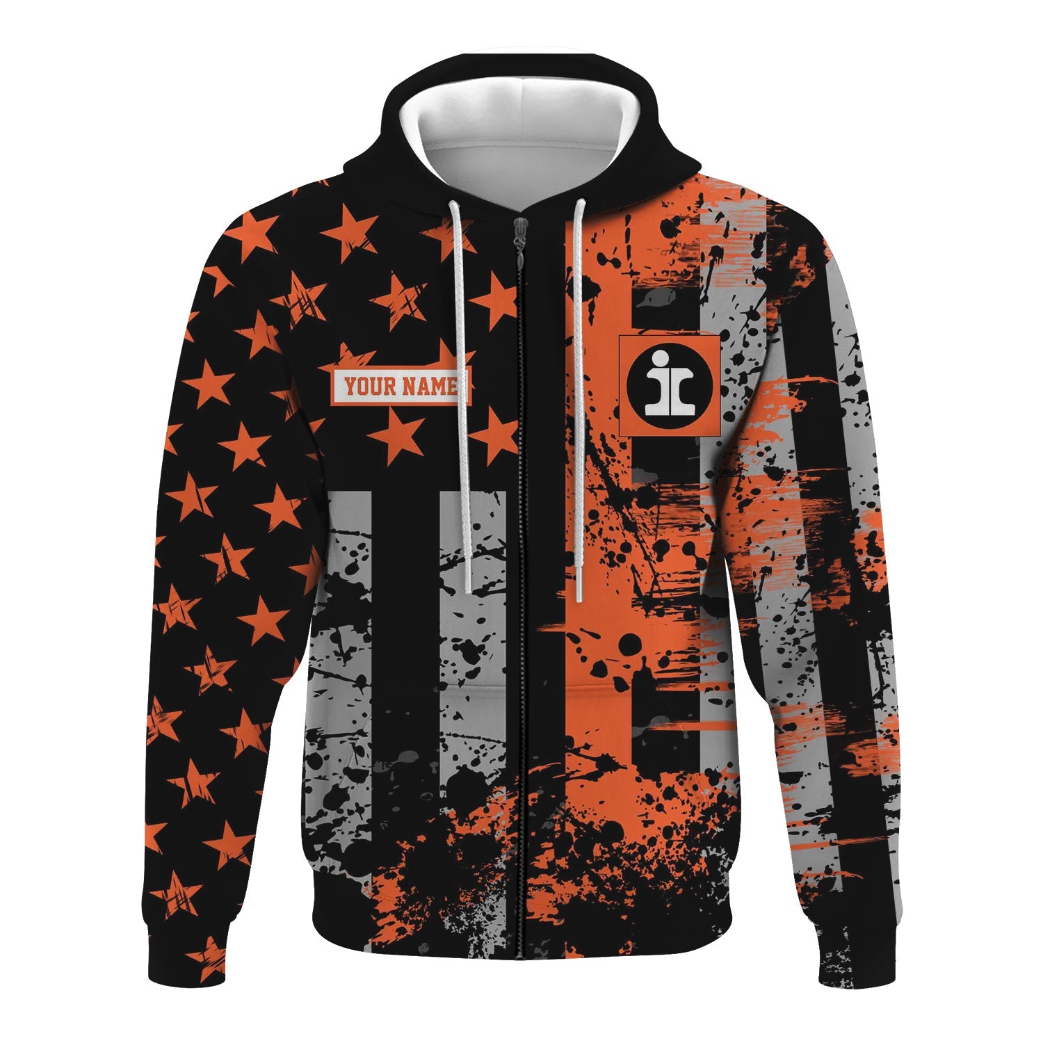 Railspirit Personalized Illinois Central Railroad Hoodie Artistic Paint American Flag Style Train Zip Up Hoodie
