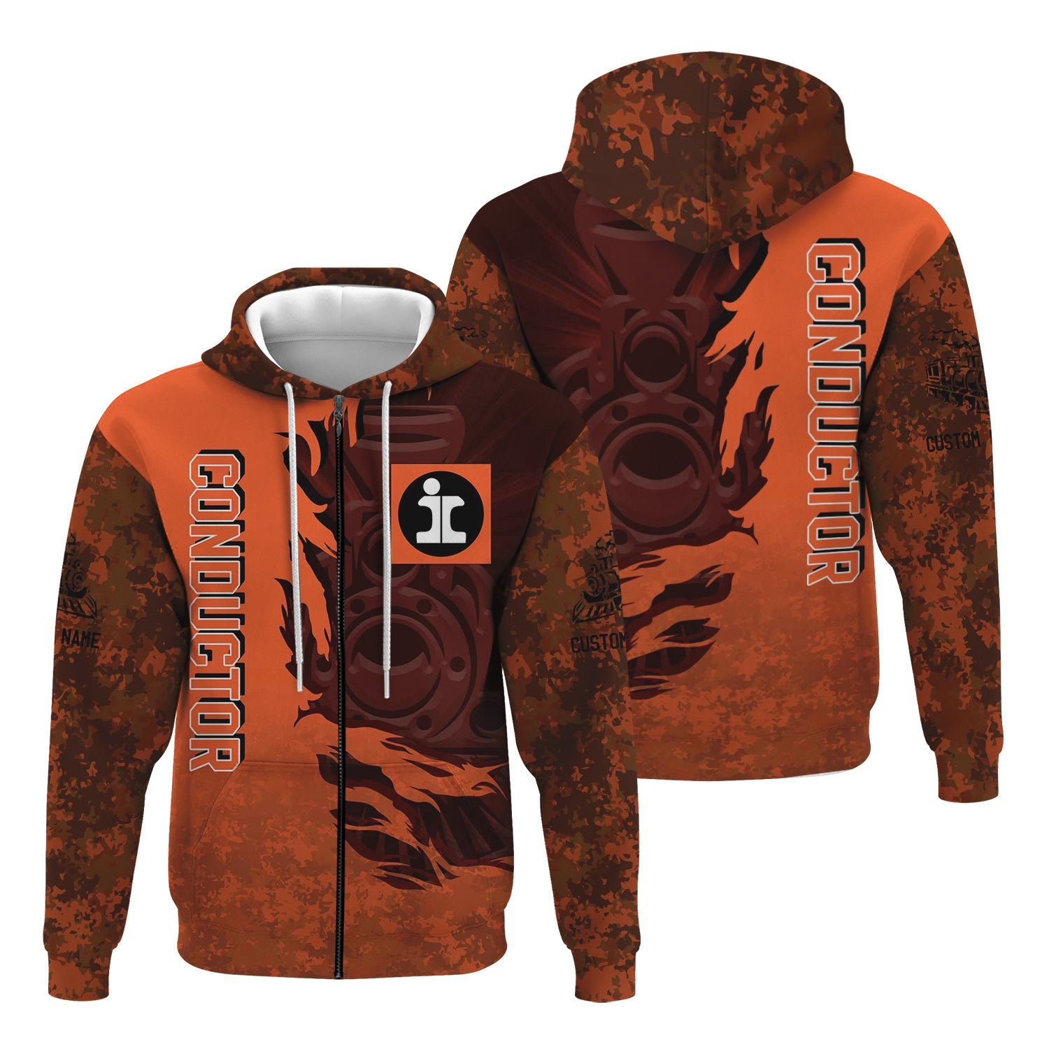 Railspirit Personalized Illinois Central Railroad Hoodie Blazing Style with Custom Position Train Zip Up Hoodie