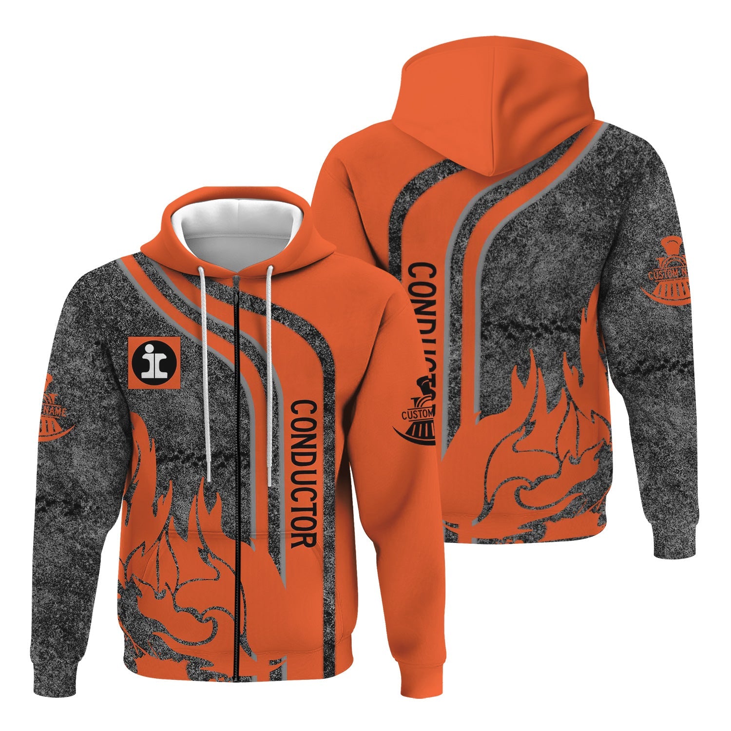 Railspirit Personalized Illinois Central Railroad Hoodie Flame Design with Custom Job Position Train Zip Up Hoodie
