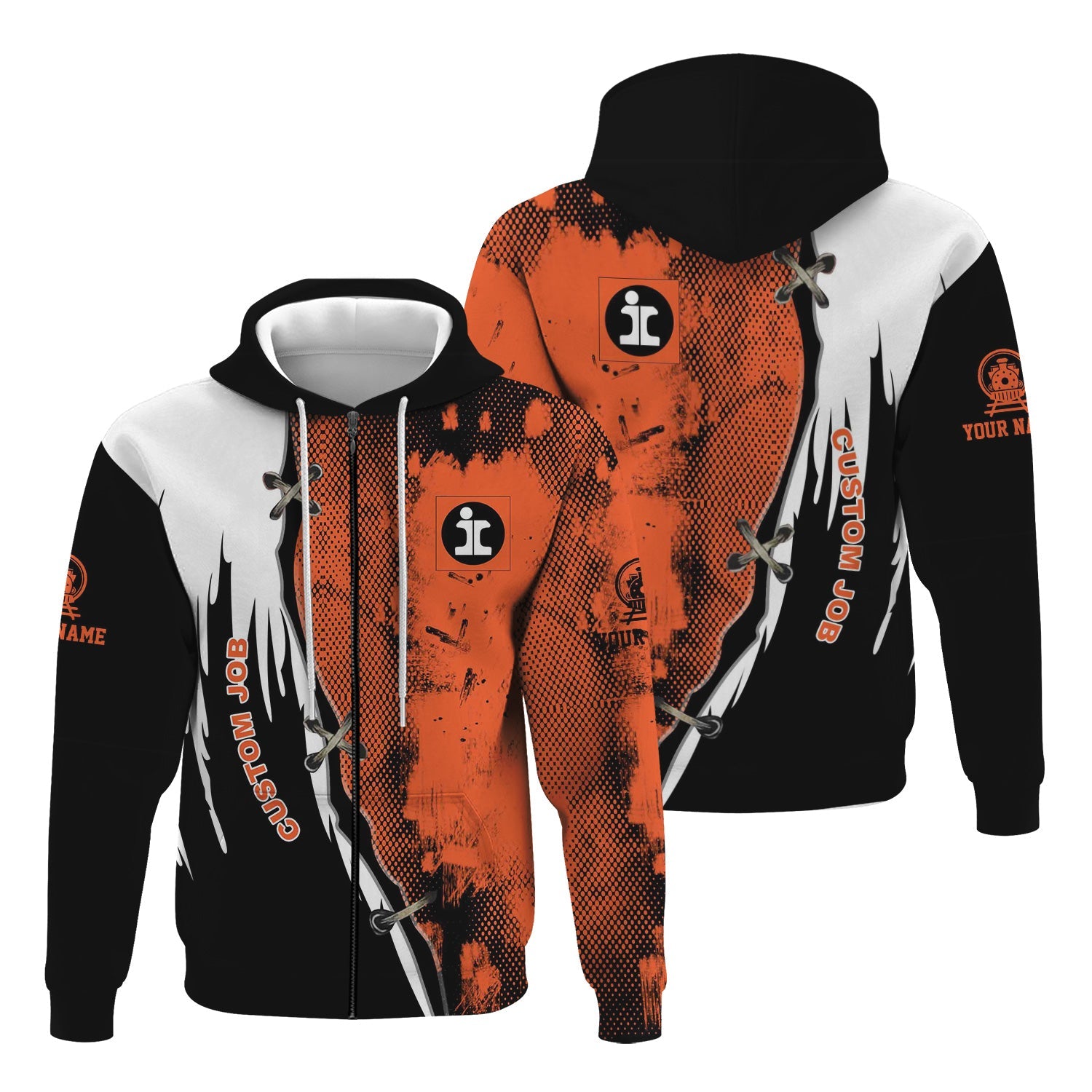 Railspirit Personalized Illinois Central Railroad Hoodie Retro Stitches Design with Custom Position Train Zip Up Hoodie