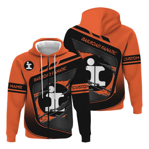 Railspirit Personalized Illinois Central Railroad Hoodie Ripped Texture Style Train Zip Up Hoodie For Railroad Fanatic