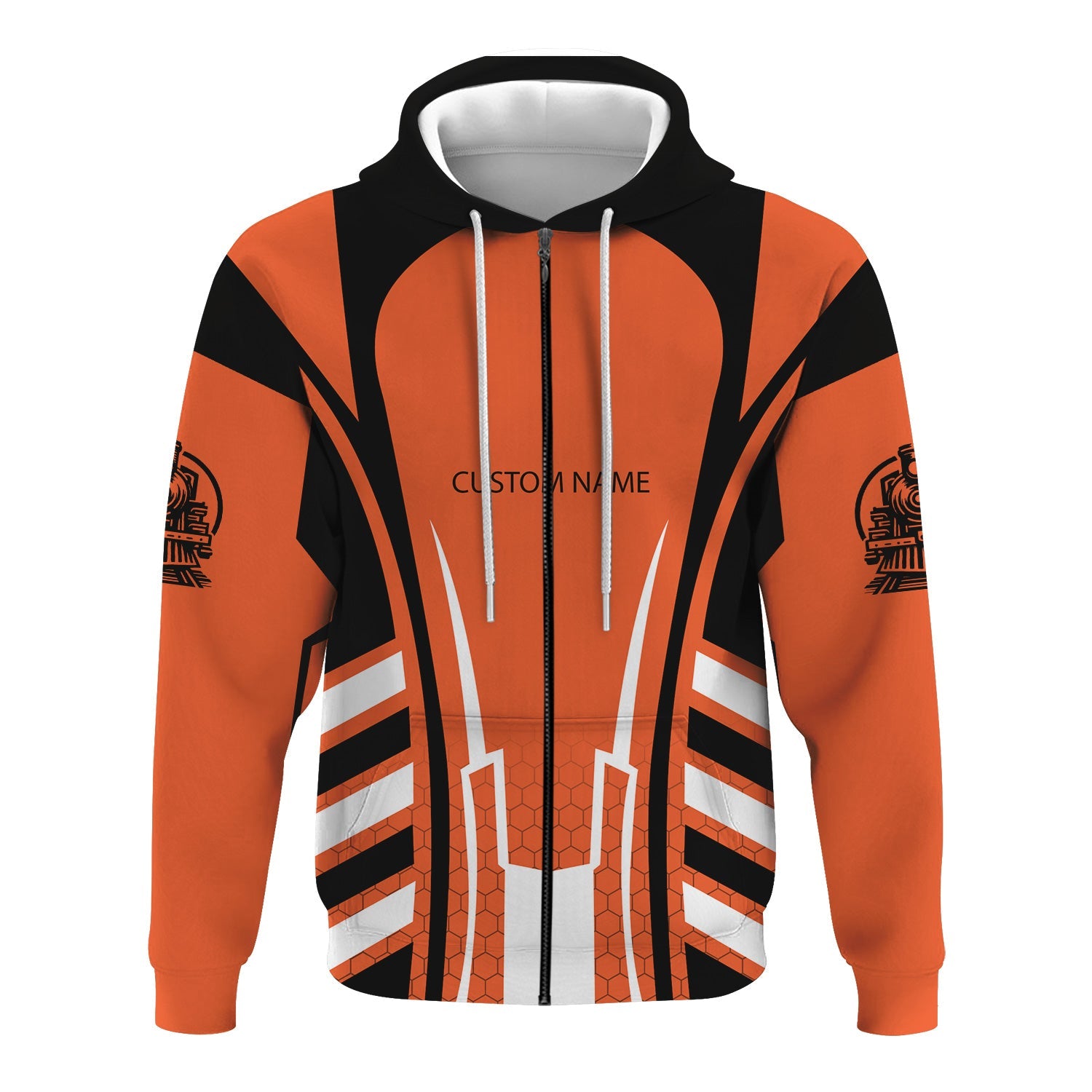 Railspirit Personalized Illinois Central Railroad Hoodie Striped Railroad Style Train Zip Up Hoodie All Over Print