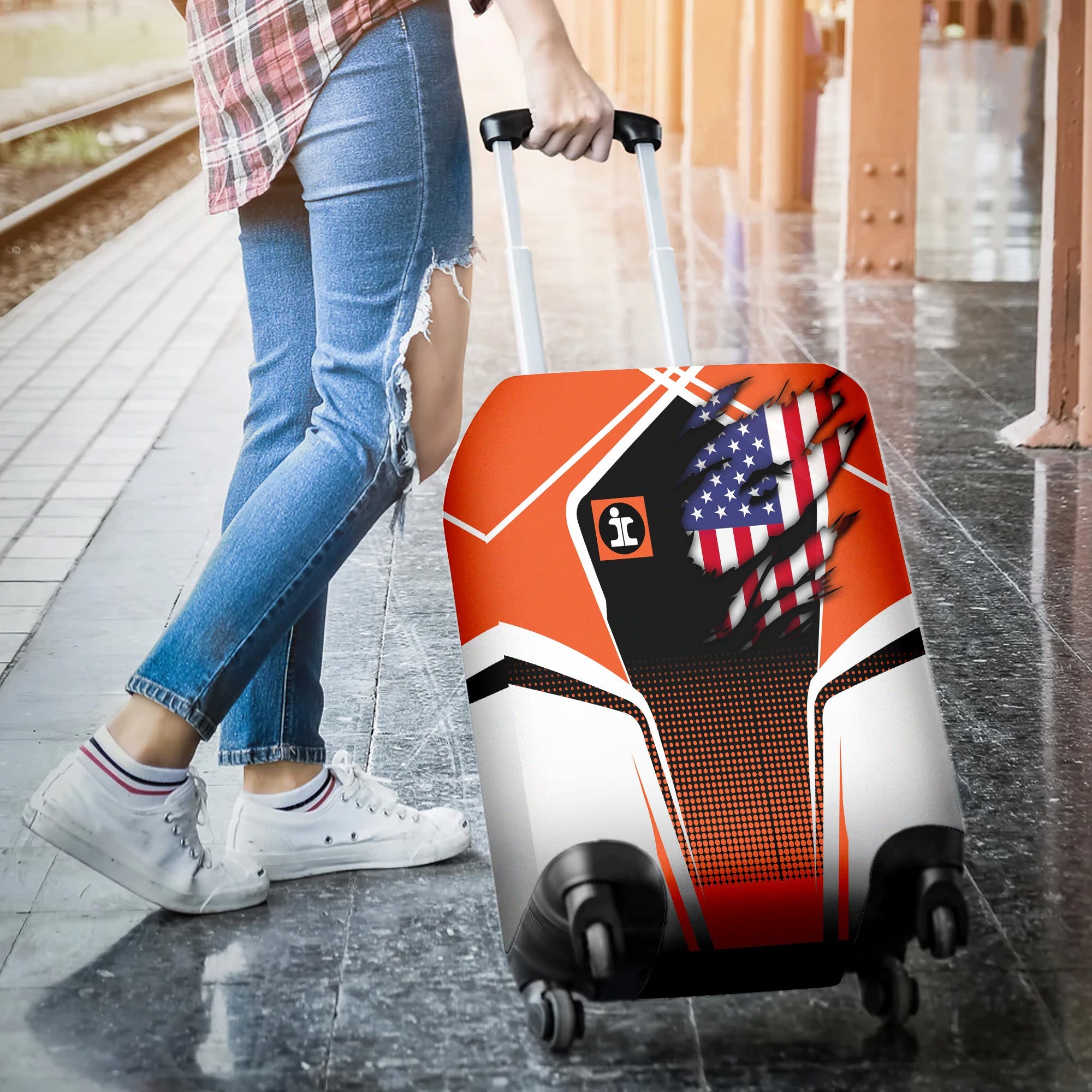 Railspirit Personalized Illinois Central Railroad Luggage Cover American Eagle Vintage Train Luggage Protection