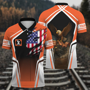 Railspirit Personalized Illinois Central Railroad Polo Shirt American Eagle Vintage Train Shirt