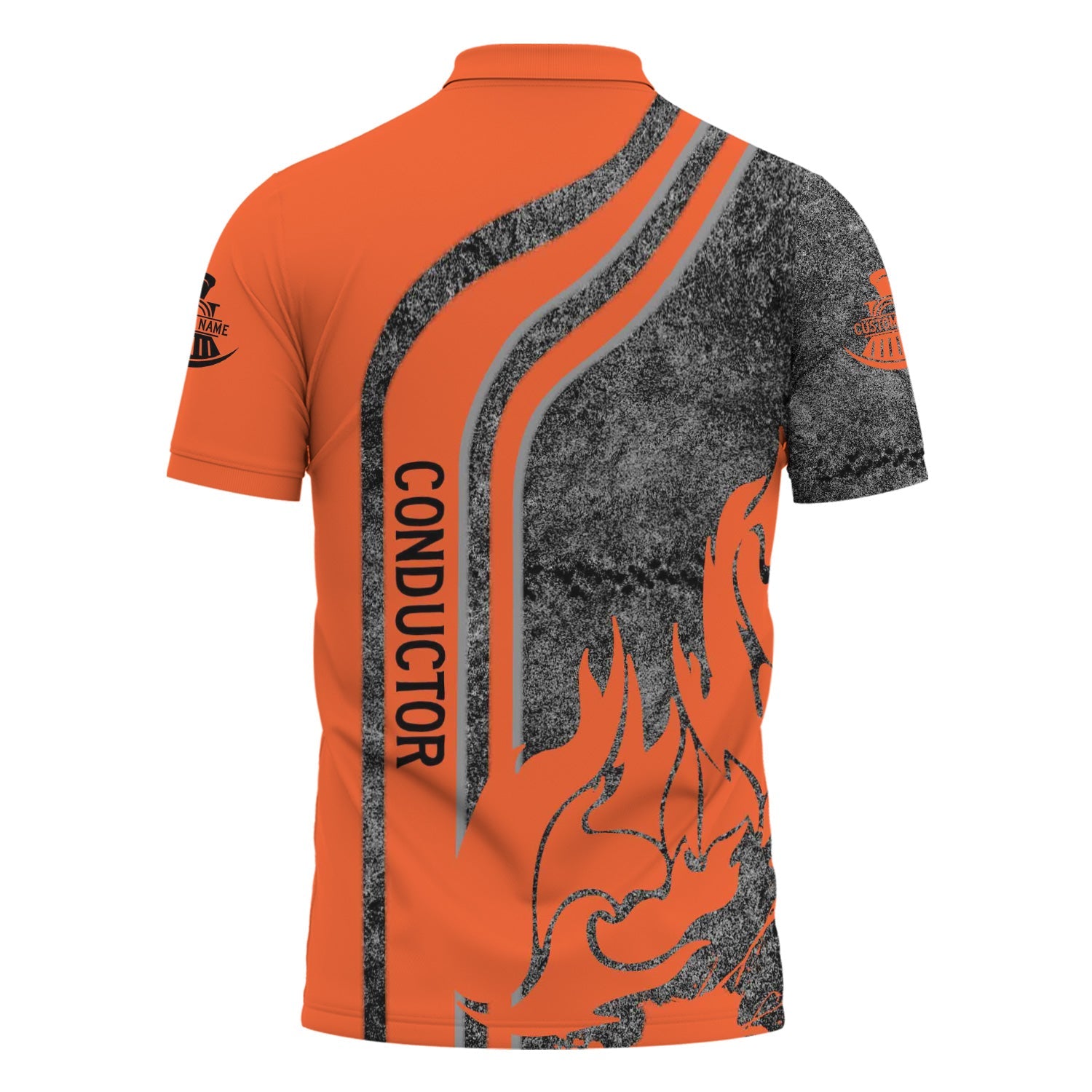 Railspirit Personalized Illinois Central Railroad Polo Shirt Flame Design with Custom Job Position Train Shirt