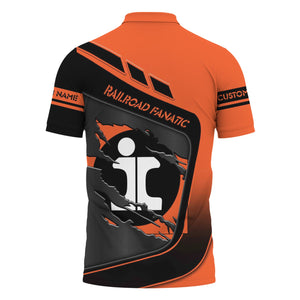 Railspirit Personalized Illinois Central Railroad Polo Shirt Ripped Texture Style Train Shirt For Railroad Fanatic