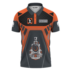 Railspirit Personalized Illinois Central Railroad Polo Shirt Steam Locomotive Engine Graphic Train Shirt All Over Print
