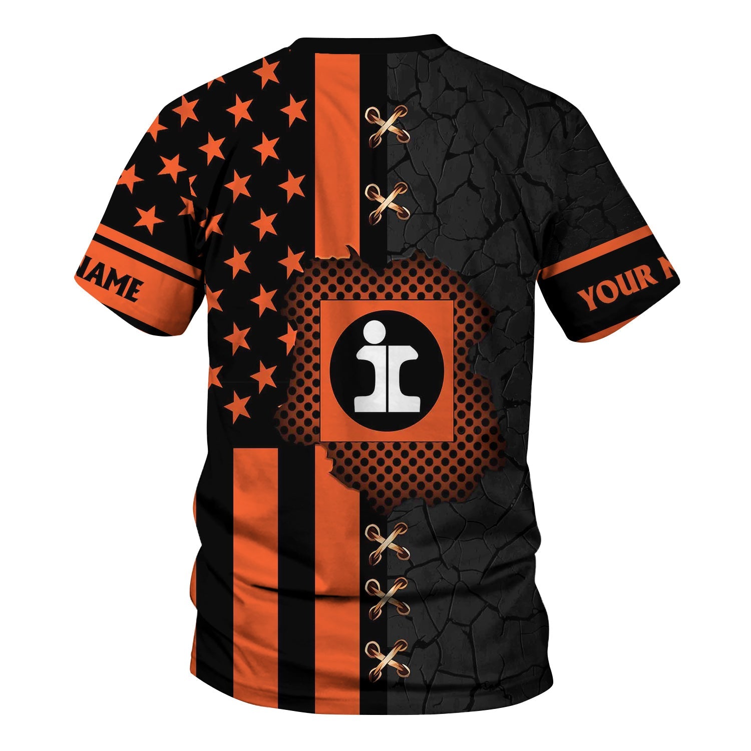 Railspirit Personalized Illinois Central Railroad T-Shirt American Flag with Crack Effect Train Shirt