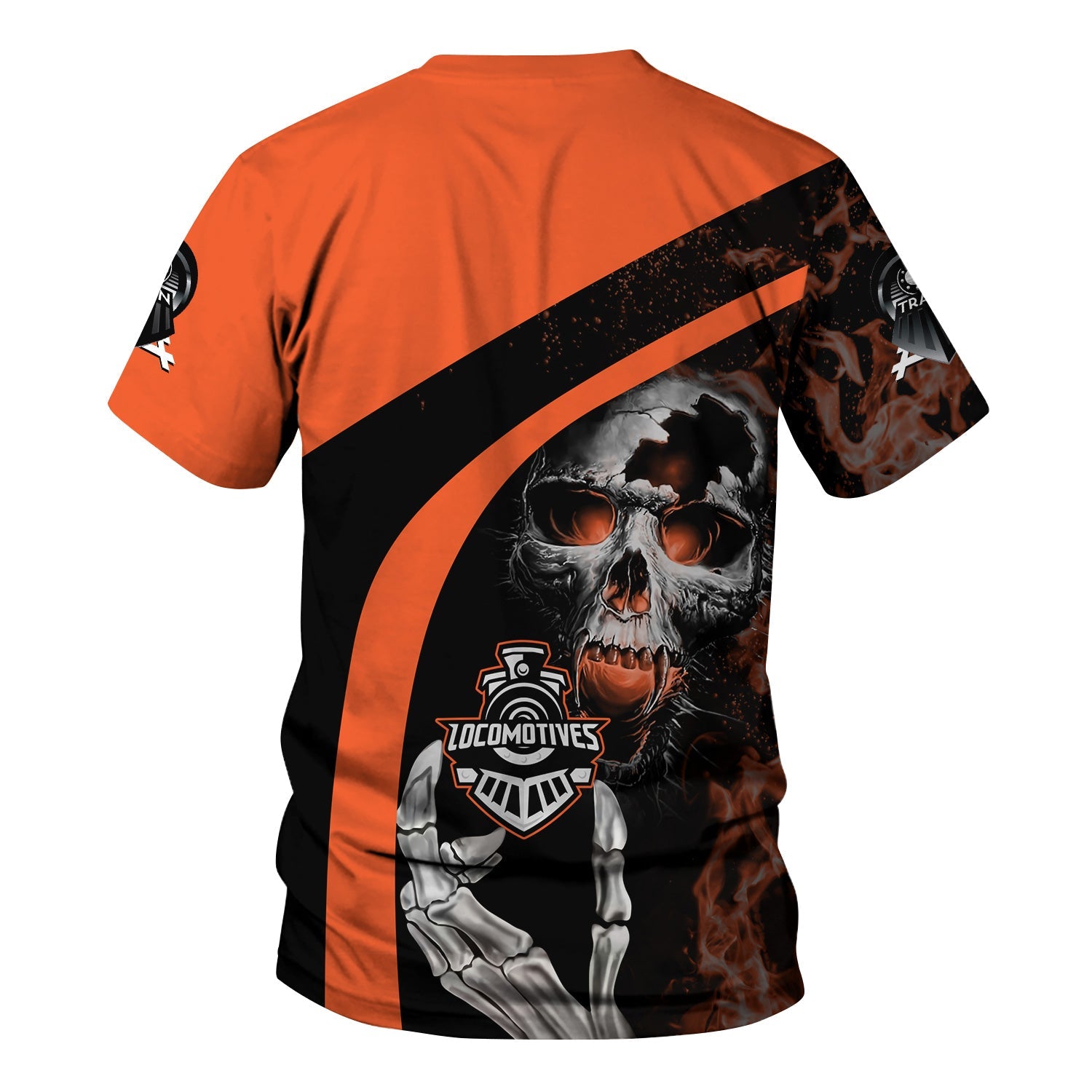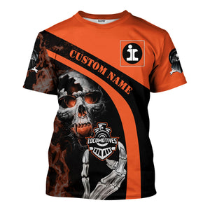 Railspirit Personalized Illinois Central Railroad T-Shirt Flame Skull Design Train Shirt for Locomotive Fans