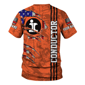 Railspirit Personalized Illinois Central Railroad T-Shirt USA Flag Claw Art with Custom Job Train Shirt
