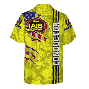 Railspirit Personalized Iowa Interstate Railroad Hawaiian Shirt USA Flag Claw Art with Custom Job IAIS Train Shirt
