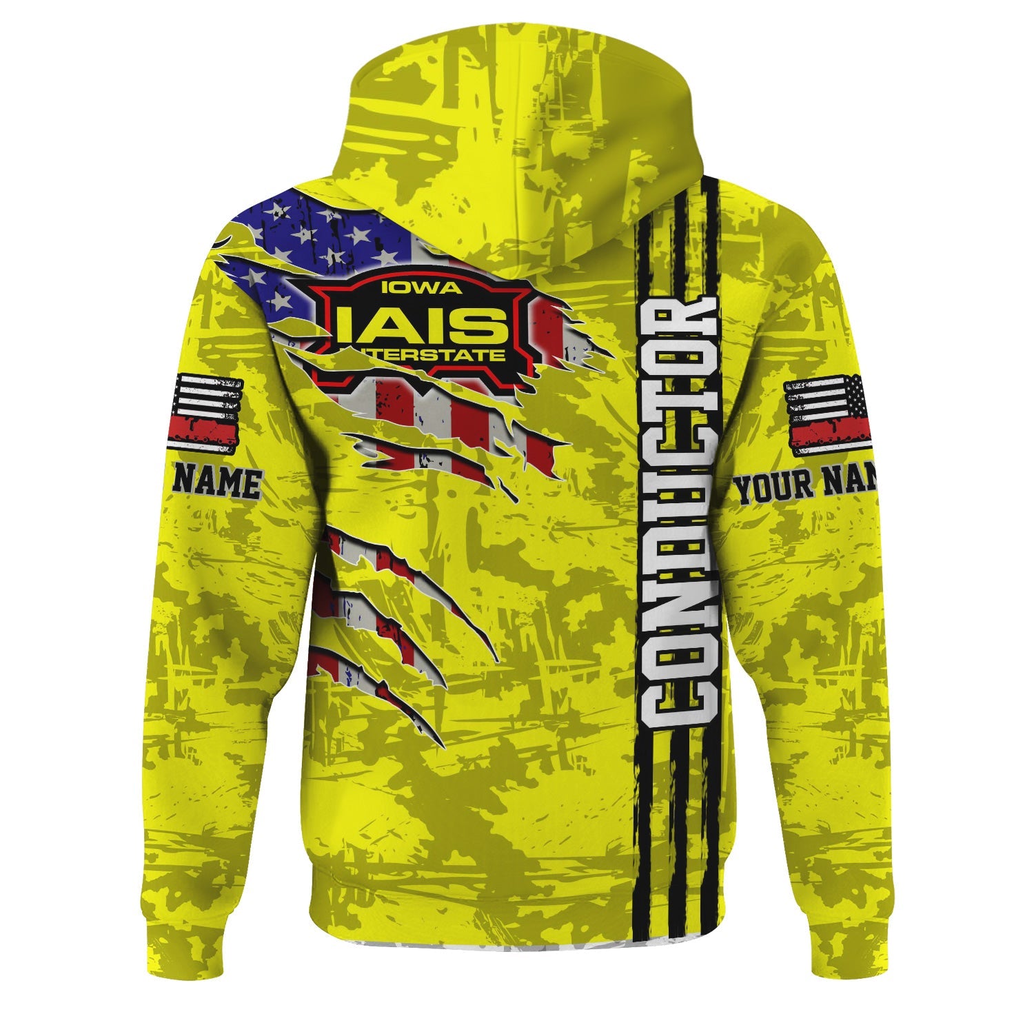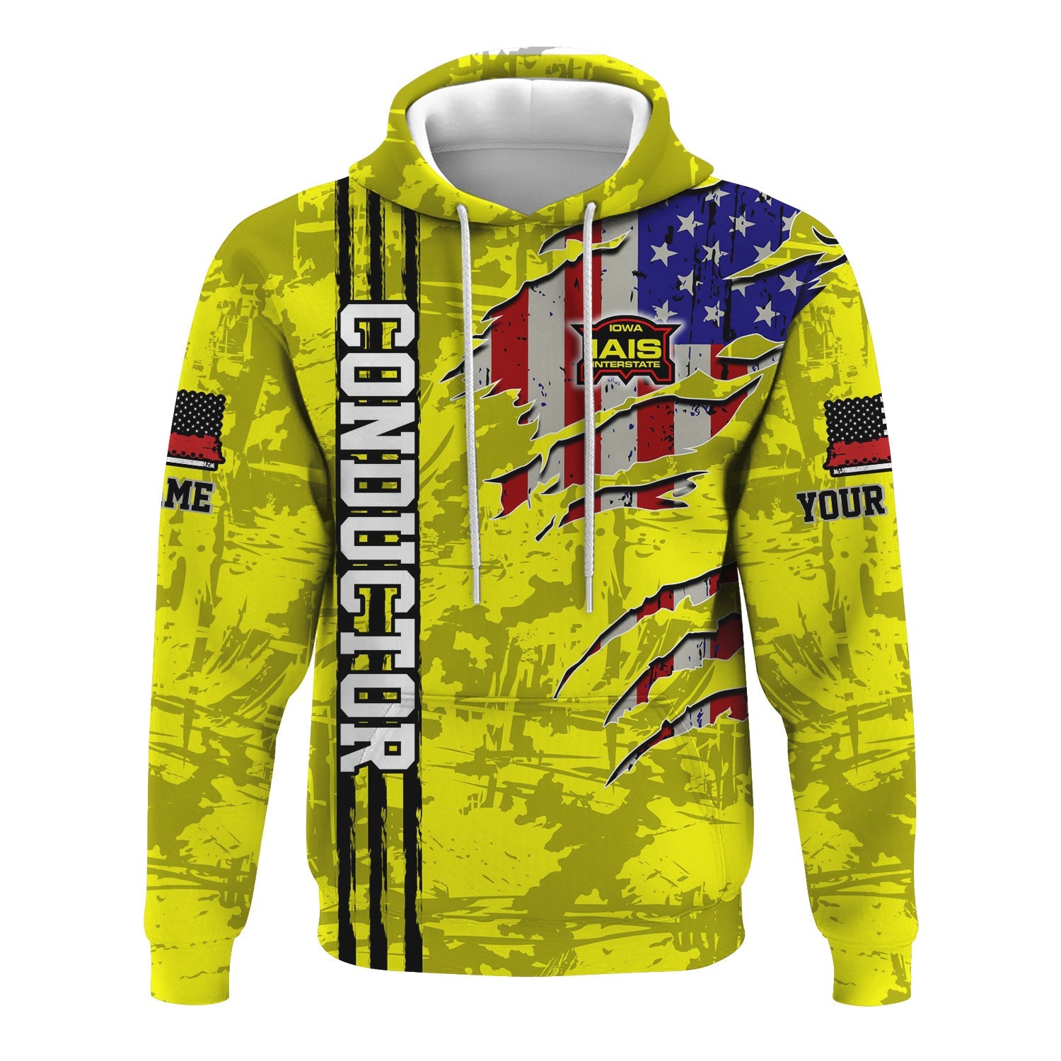 Railspirit Personalized Iowa Interstate Railroad Hoodie USA Flag Claw Art with Custom Job IAIS Train Zip Up Hoodie