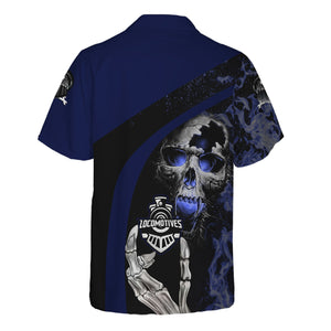 Railspirit Personalized Jersey Central Railroad Hawaiian Shirt Flame Skull Design CNJ Train Shirt for Locomotive Fans