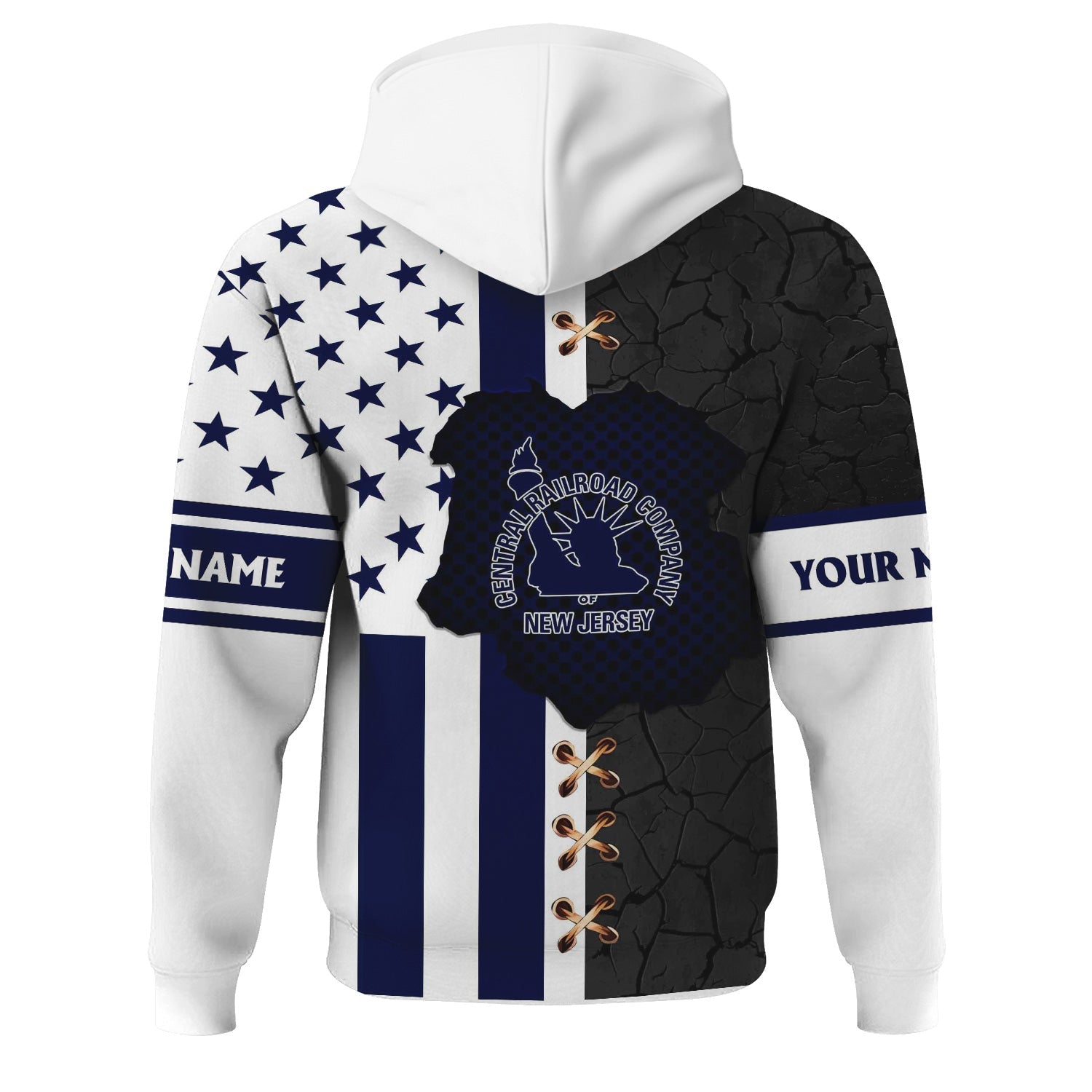 Railspirit Personalized Jersey Central Railroad Hoodie American Flag with Crack Effect CNJ Train Zip Up Hoodie