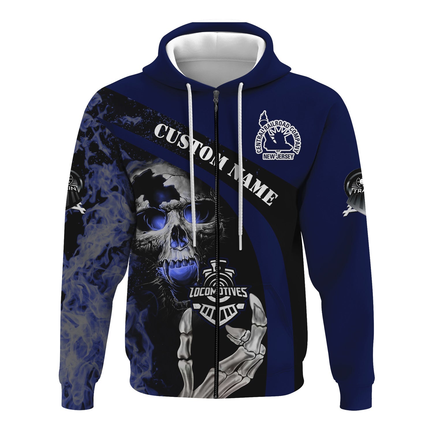 Railspirit Personalized Jersey Central Railroad Hoodie Flame Skull Design CNJ Train Zip Up Hoodie for Locomotive Fans