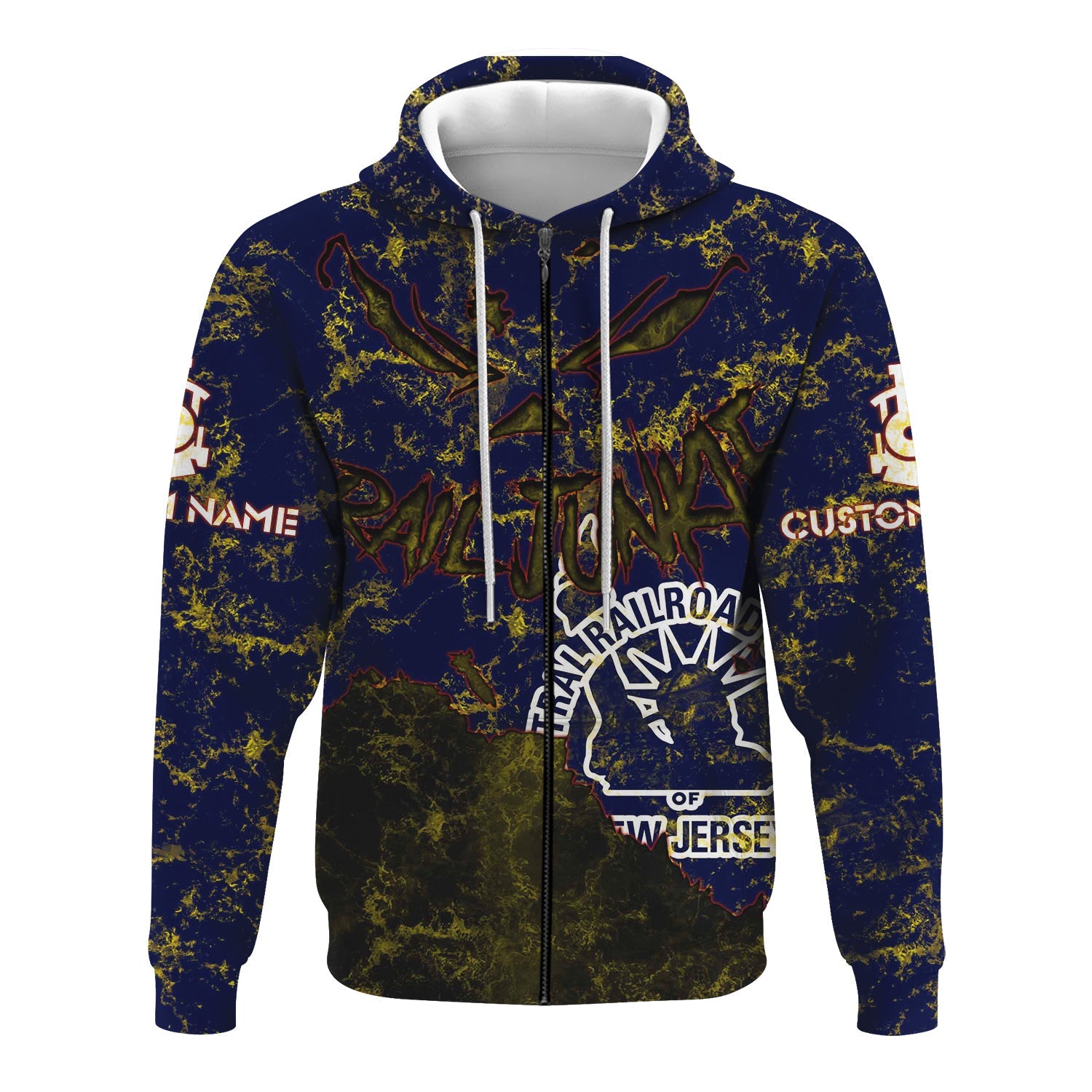 Railspirit Personalized Jersey Central Railroad Hoodie Torn Graphic Style CNJ Train Zip Up Hoodie For Rail Junkie
