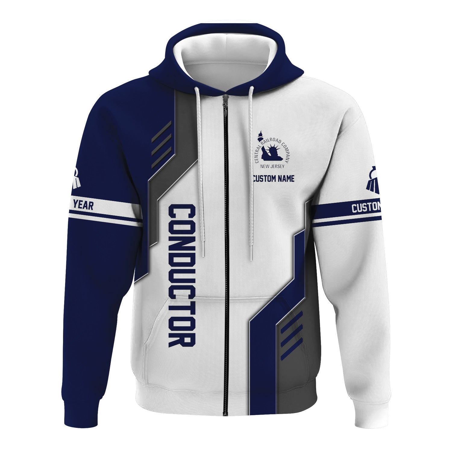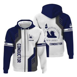 Railspirit Personalized Jersey Central Railroad Hoodie Unique Railway Style with Custom Job CNJ Train Zip Up Hoodie