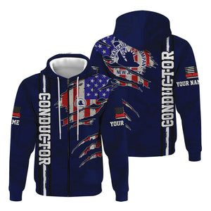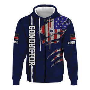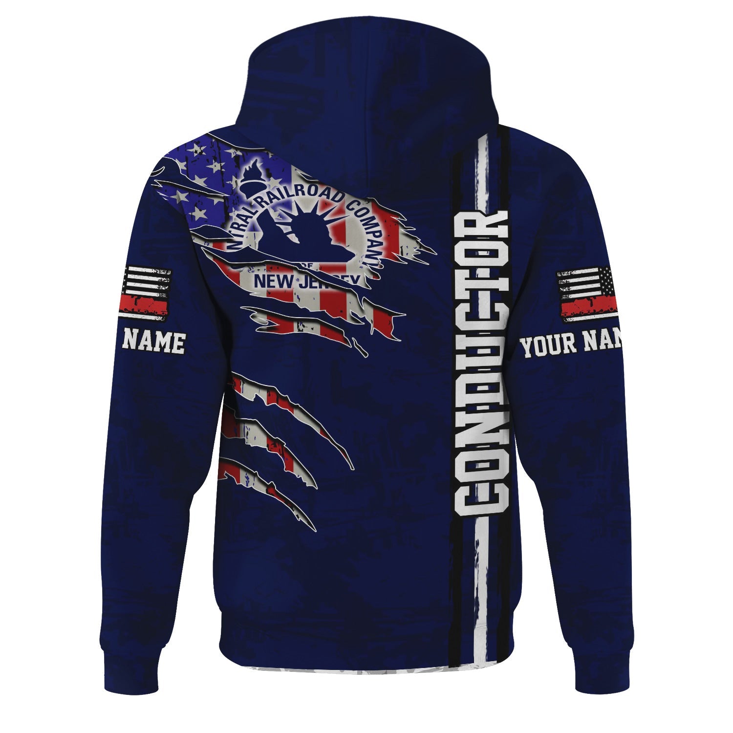 Railspirit Personalized Jersey Central Railroad Hoodie USA Flag Claw Art with Custom Job CNJ Train Zip Up Hoodie
