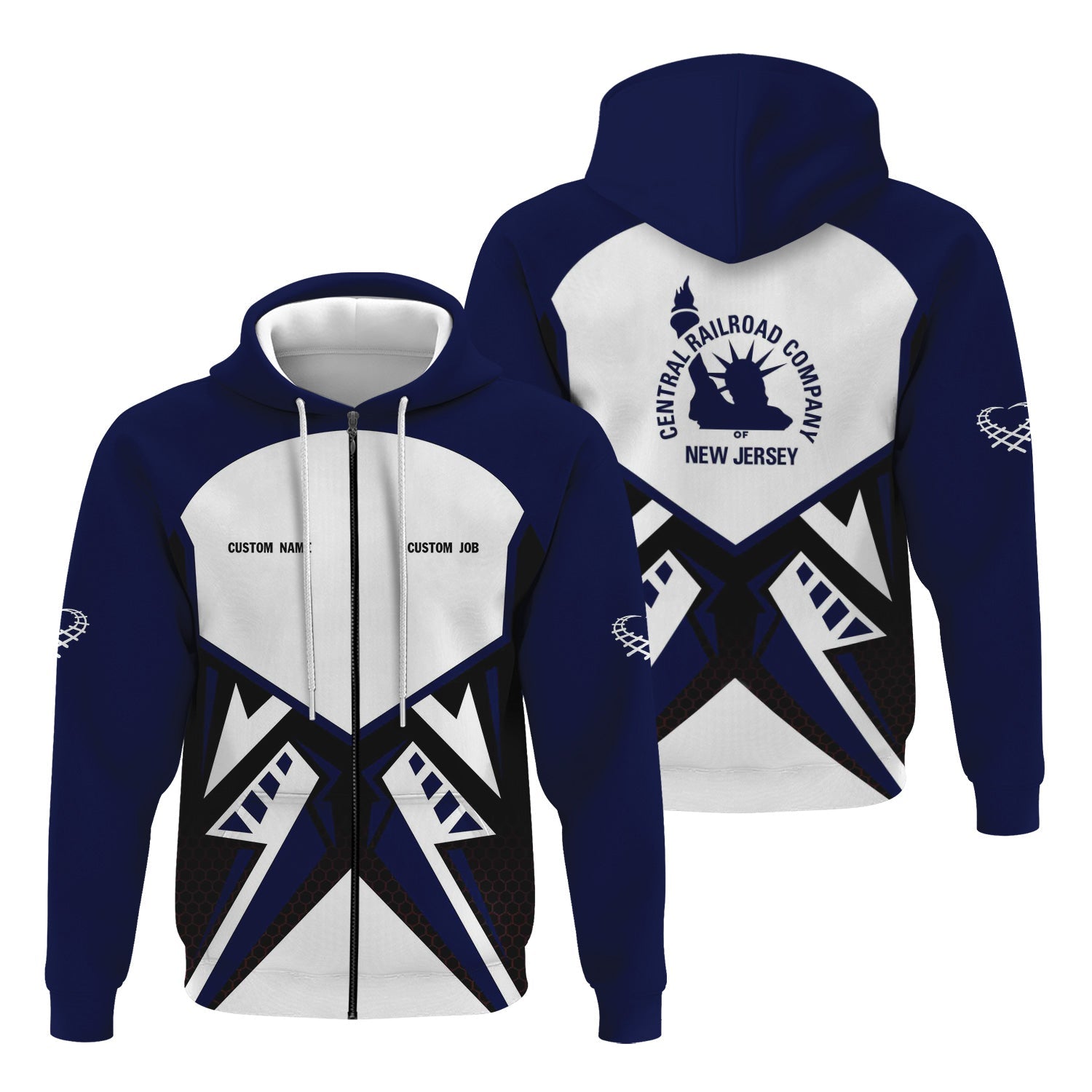 Railspirit Personalized Jersey Central Railroad Hoodie Vibriant Style with Custom Position CNJ Train Zip Up Hoodie