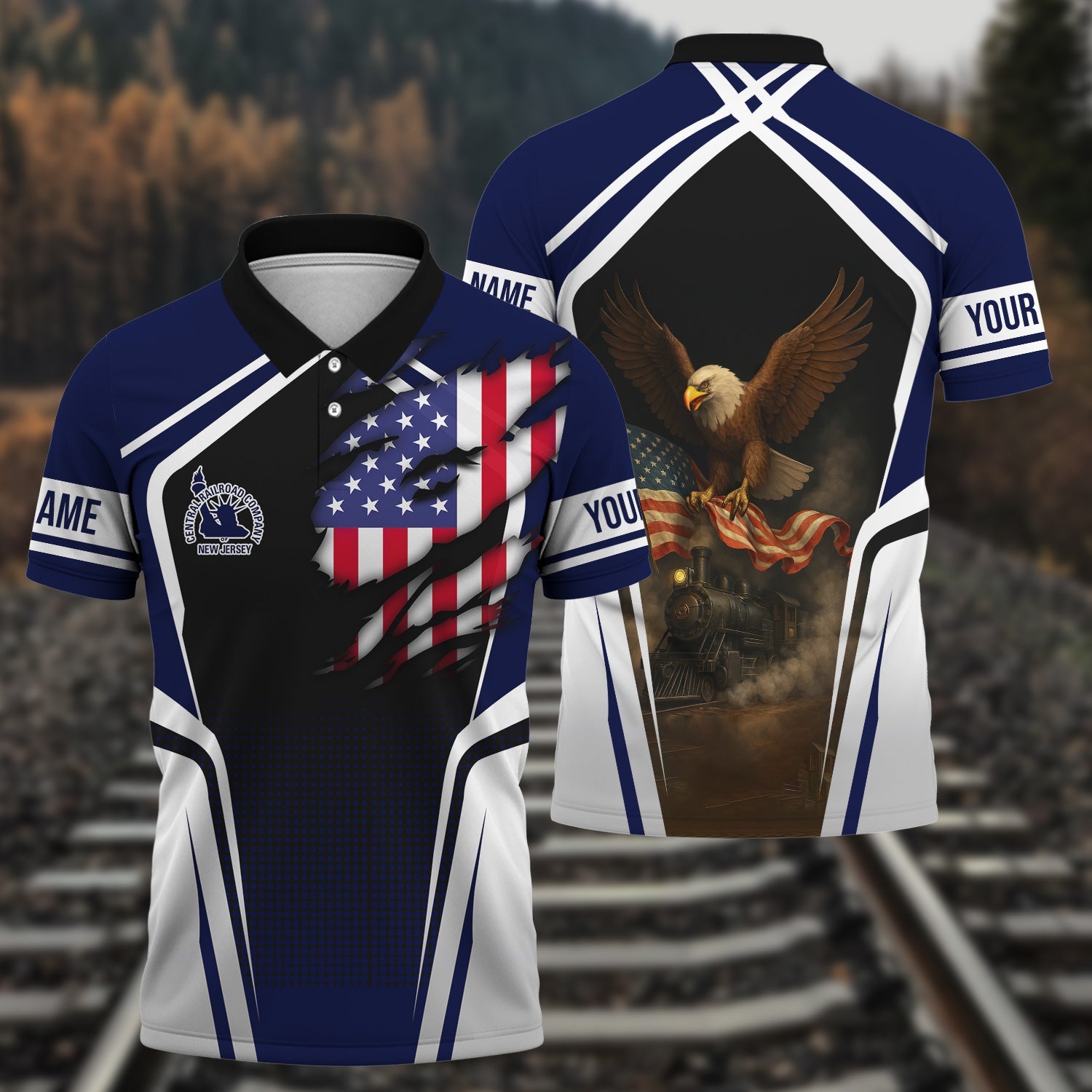 Railspirit Personalized CNJ Jersey Central Railroad Polo Shirt American Eagle Vintage Train Shirt