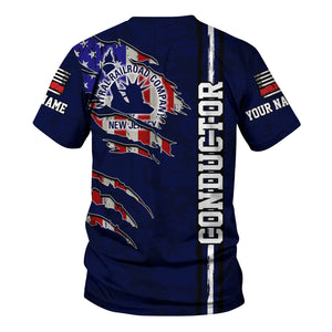 Railspirit Personalized Jersey Central Railroad T-Shirt USA Flag Claw Art with Custom Job CNJ Train Shirt
