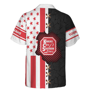Railspirit Personalized Kansas City Southern Hawaiian Shirt American Flag with Crack Effect Train Shirt