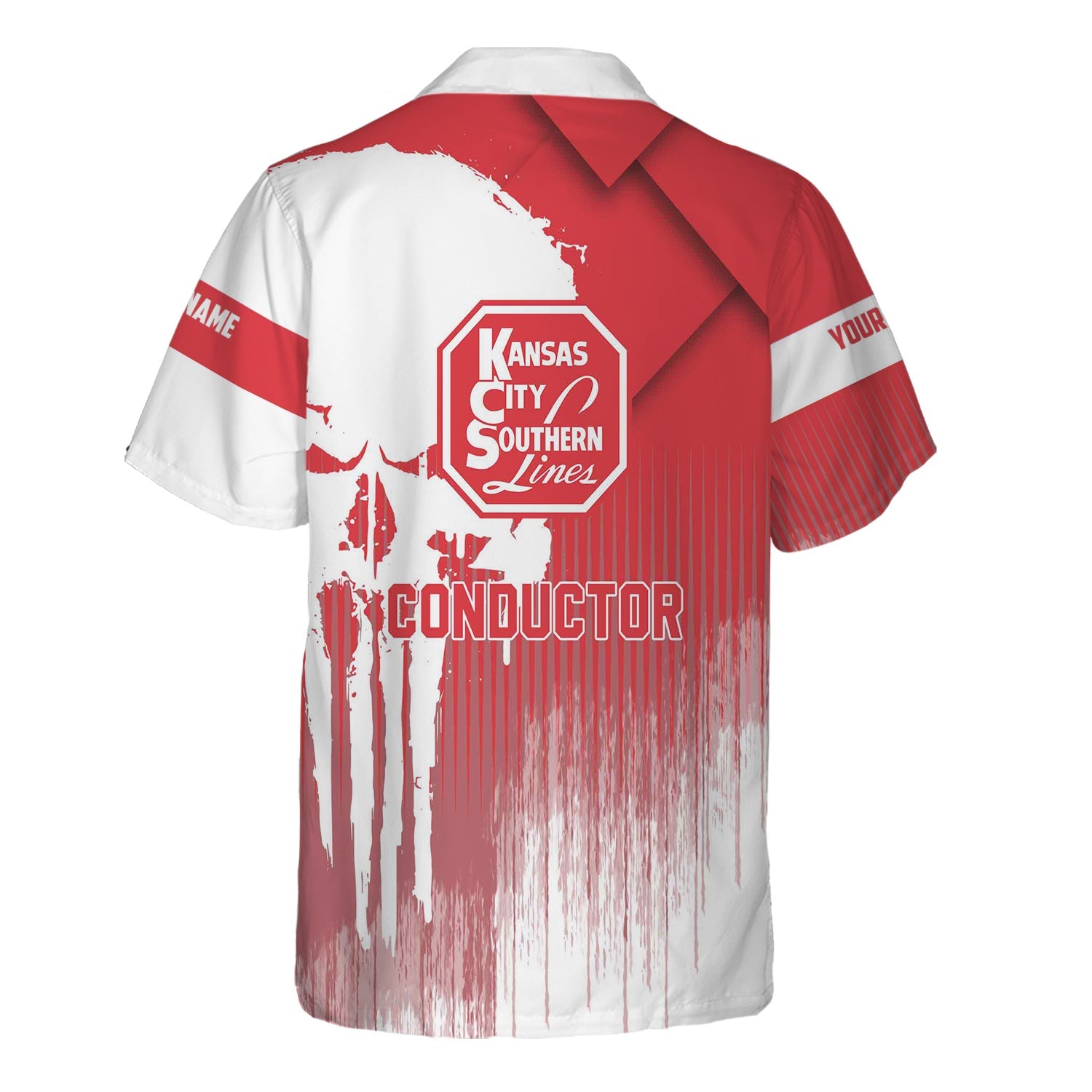 Railspirit Personalized Kansas City Southern Hawaiian Shirt Skull Design with Custom Job Train Shirt for Trackhead Crew